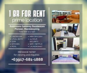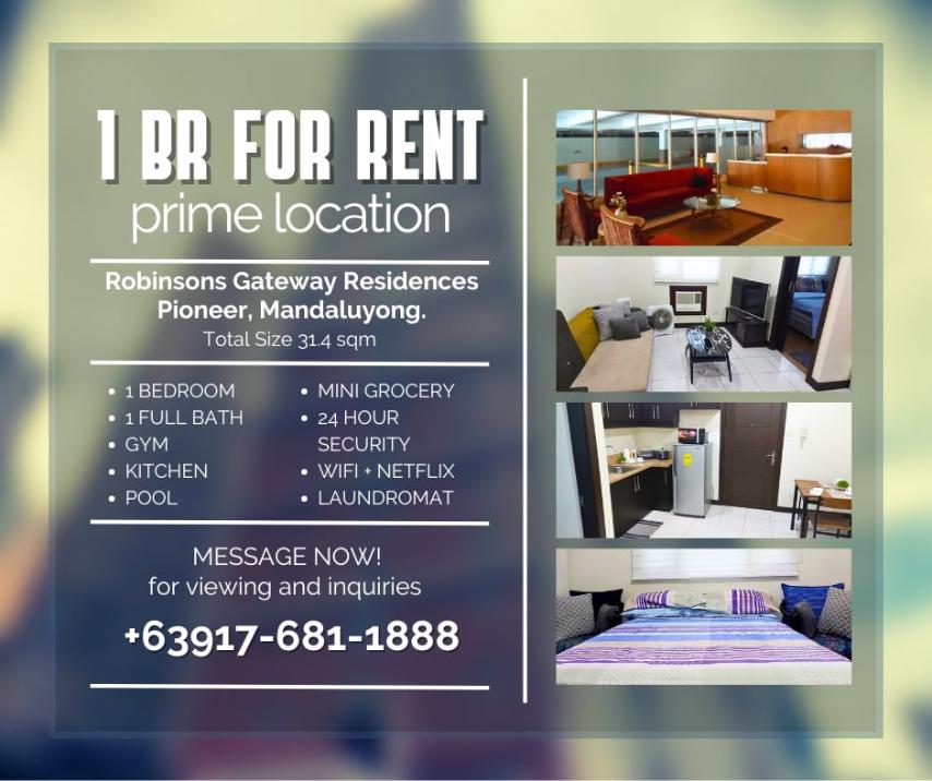 1 Bedroom Condo unit in Robinson's Gateway Residence Mandaluyong